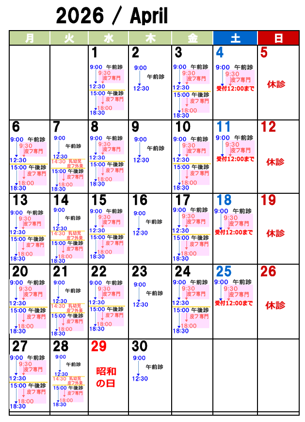 診療カレンダー