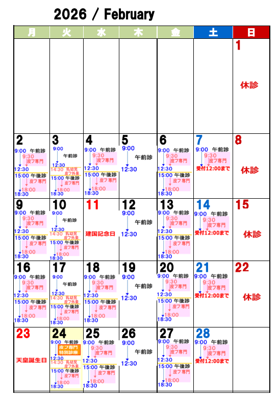 2月24日(火)の午前中に皮膚科特別診療があります。